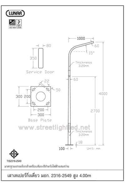 • เสาไฟถนนมีความแข็งแรงทนทานได้รับมาตรฐาน มอก.เสาเหล็กกล้าเคลือบสังกะสี