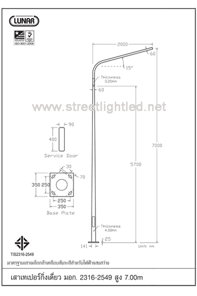 • เสาไฟถนนมีความแข็งแรงทนทาน  ได้รับมาตรฐาน มอก.เสาเหล็กกล้าเคลือบสังกะสีสำหรับไฟฟ้าแสงสว่าง