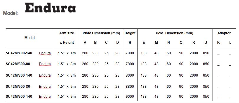 - Available with height of 2.50m, 3.0m and 9.00m